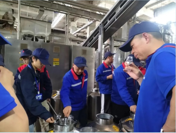 釀造生產(chǎn)作為一項經(jīng)驗性很強的工作,對技能要求很高。特別是對溫度的把控、上甑出酒的技能、水分、酸度的控制要求較高。上甑蒸餾是固態(tài)法白酒生產(chǎn)中提升產(chǎn)質(zhì)產(chǎn)量的關(guān)鍵工序。為提升員工技能,促進“比學(xué)趕幫超”的學(xué)習(xí)氛圍,黃燈芳時常鼓勵員工競比技藝,提升員工的勞動技能和實際操作能力。他組織車間員工進行“上甑蒸餾比賽”、“攤凉加曲競賽”,通過以賽促學(xué)、以賽促練發(fā)揮工匠精神,提升了釀造車間的酒質(zhì)、酒率,極大地降低生產(chǎn)成本,提高了生產(chǎn)效率,同時也提升了員工的操作技能和工作熱情。